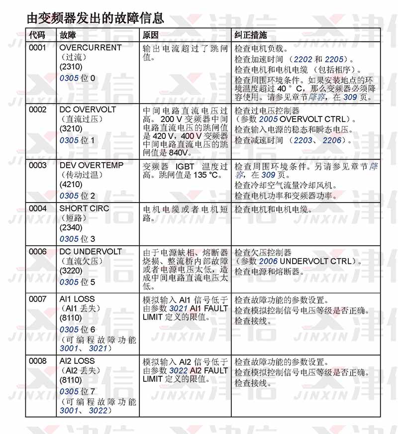 三、ABB ACS310變頻器0018-0030故障代碼,故障原因和糾正措施