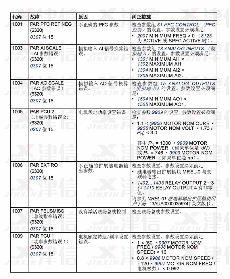 六、ABB ACS310變頻器1001-1009故障代碼,故障原因和糾正措施