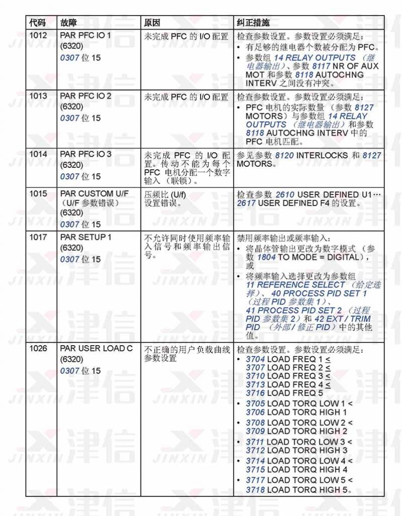 七、ABB ACS310變頻器1012-1026故障代碼,故障原因和糾正措施