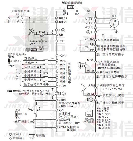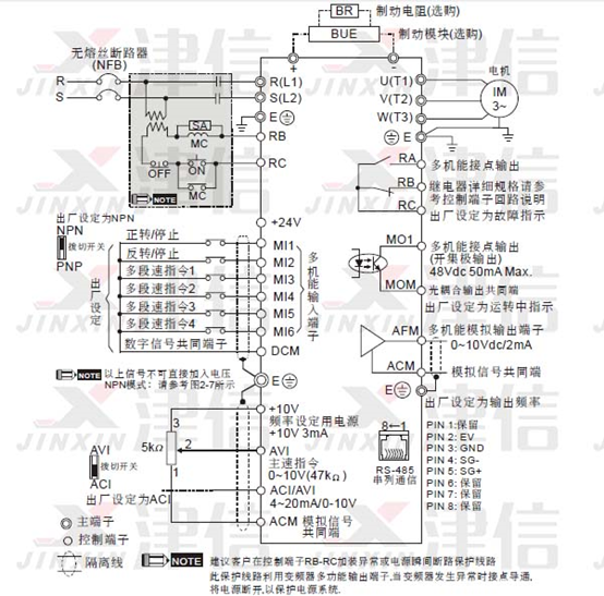 - 主回路配線與控制回路的配線必需隔離,以防止發生誤操作。