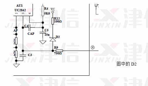 然后仔細察看開關電源的線路圖,發現在開關電源電流檢測端,UC3842的3腳,還接有另外一路保護,芯片電源腳經過穩壓管D2接到3腳,這部分線路應該是開關電源自身的過壓保護。靜態測試穩壓管特性良好,用穩壓電源通電測量也正常,穩壓值在21V左右(電源電壓17V),拆掉這個穩壓管后給機器送電,測電流波形居然回到正常的0.3A。看來是這個穩壓管特性不良引起的問題。重新安裝一個21V的穩壓管,開機試運行一上午正常,沒有再出現以前的故障。最后送交客戶,經幾天實際運行,工作正常,證明變頻器已完全修復。
