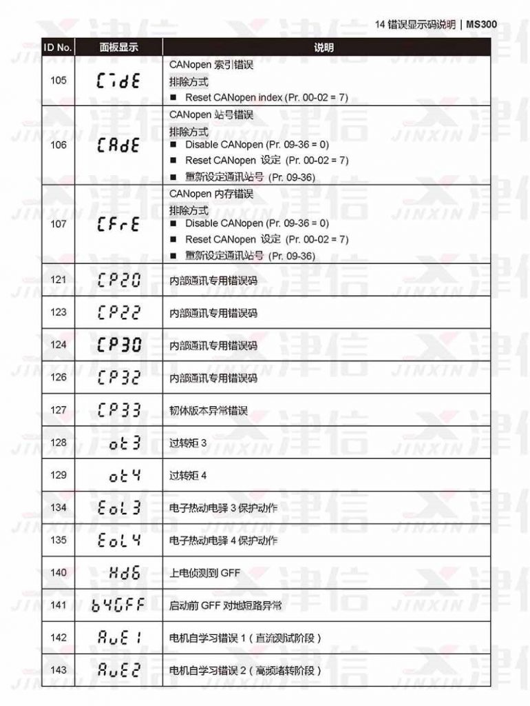 | 0x1018 | 4120 | 增量型編碼器 2 短時間位置變化過大 | 檢查編碼器輸入是否過快,或者增大編碼器分率 |
