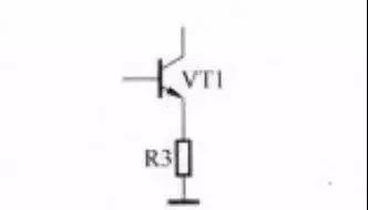 - VT1發射極上的元器件一般是向地線方向發生聯系,通常發射極與地線之間接的元器件較多,可能是電容,也可能是電阻,如下圖所示連接的是電阻。