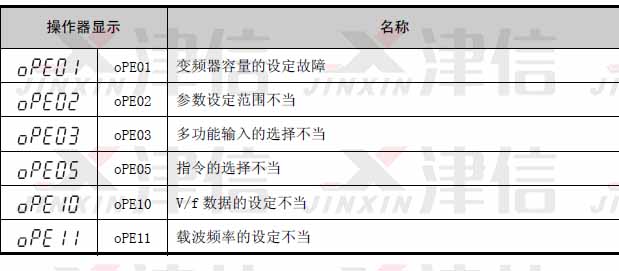 對策∶檢出故障后,請正確設定參數以排除故障原因。在沒有正確設定參數之前,變頻器將無法起動。