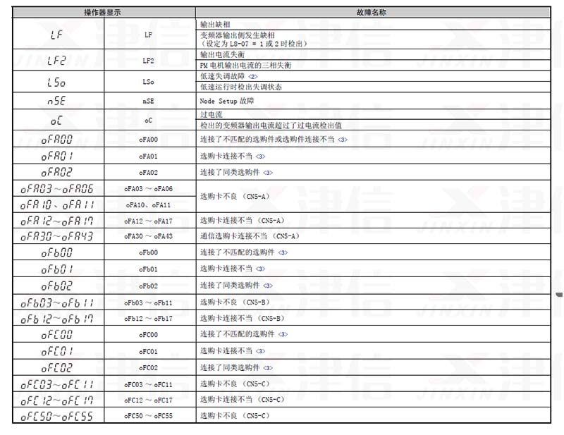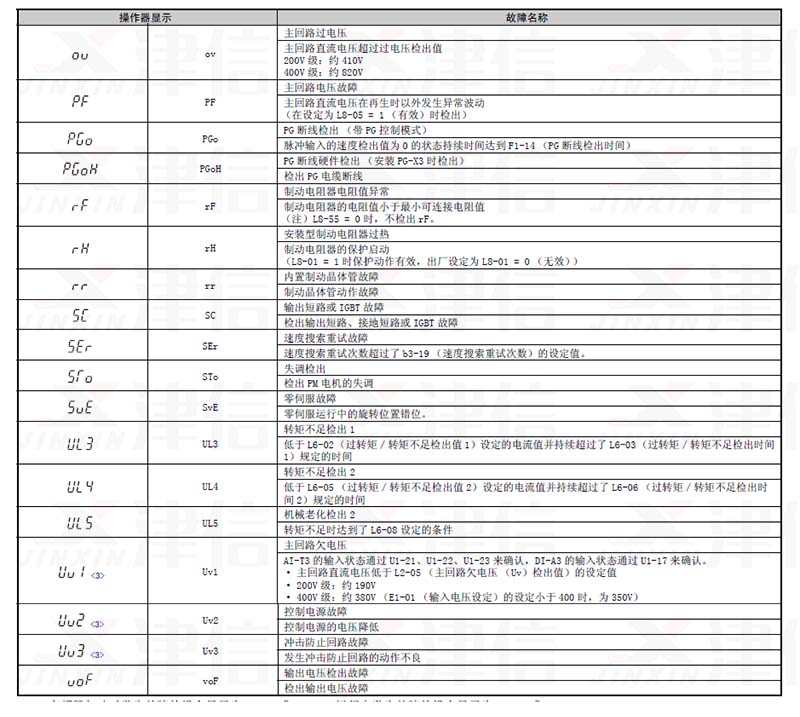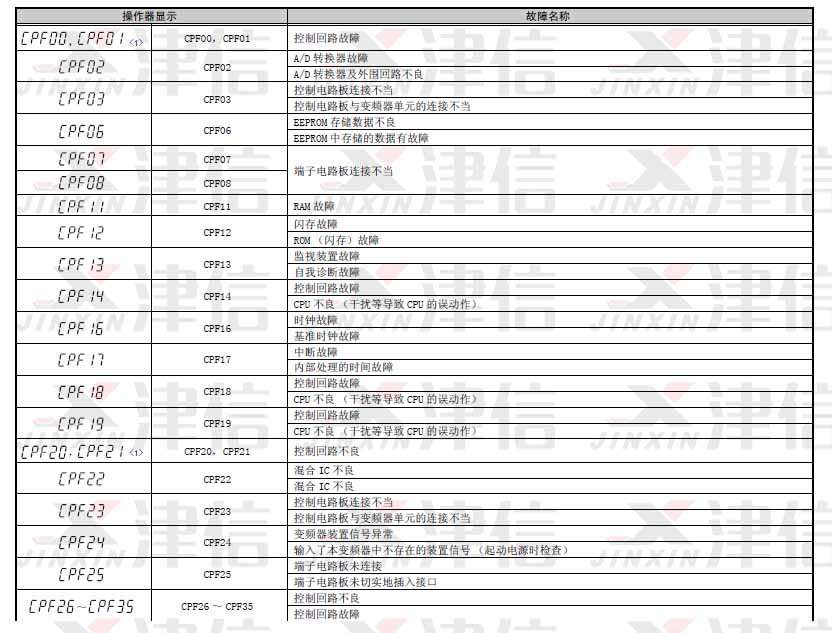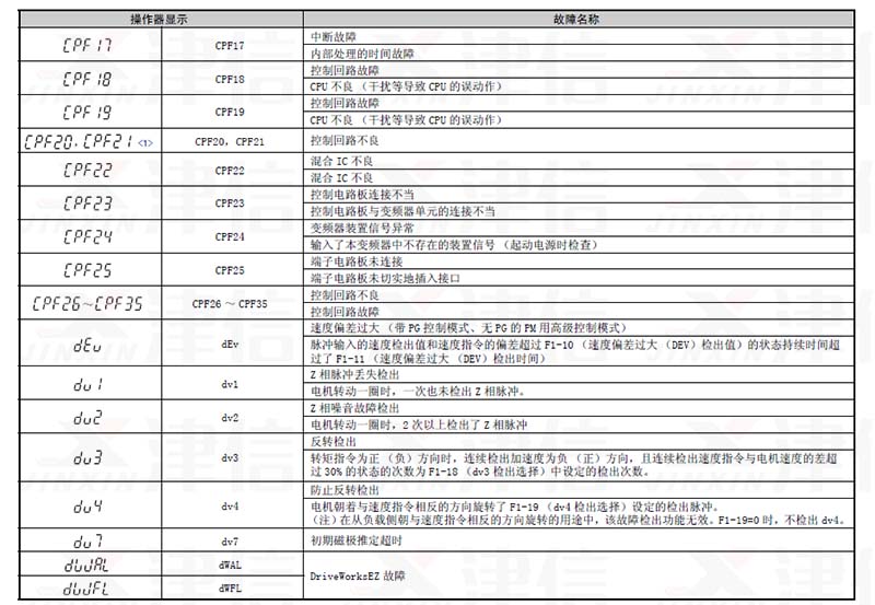 安川A1000變頻器的CPF故障主要是由于控制回路引起的,包括35個故障信號。